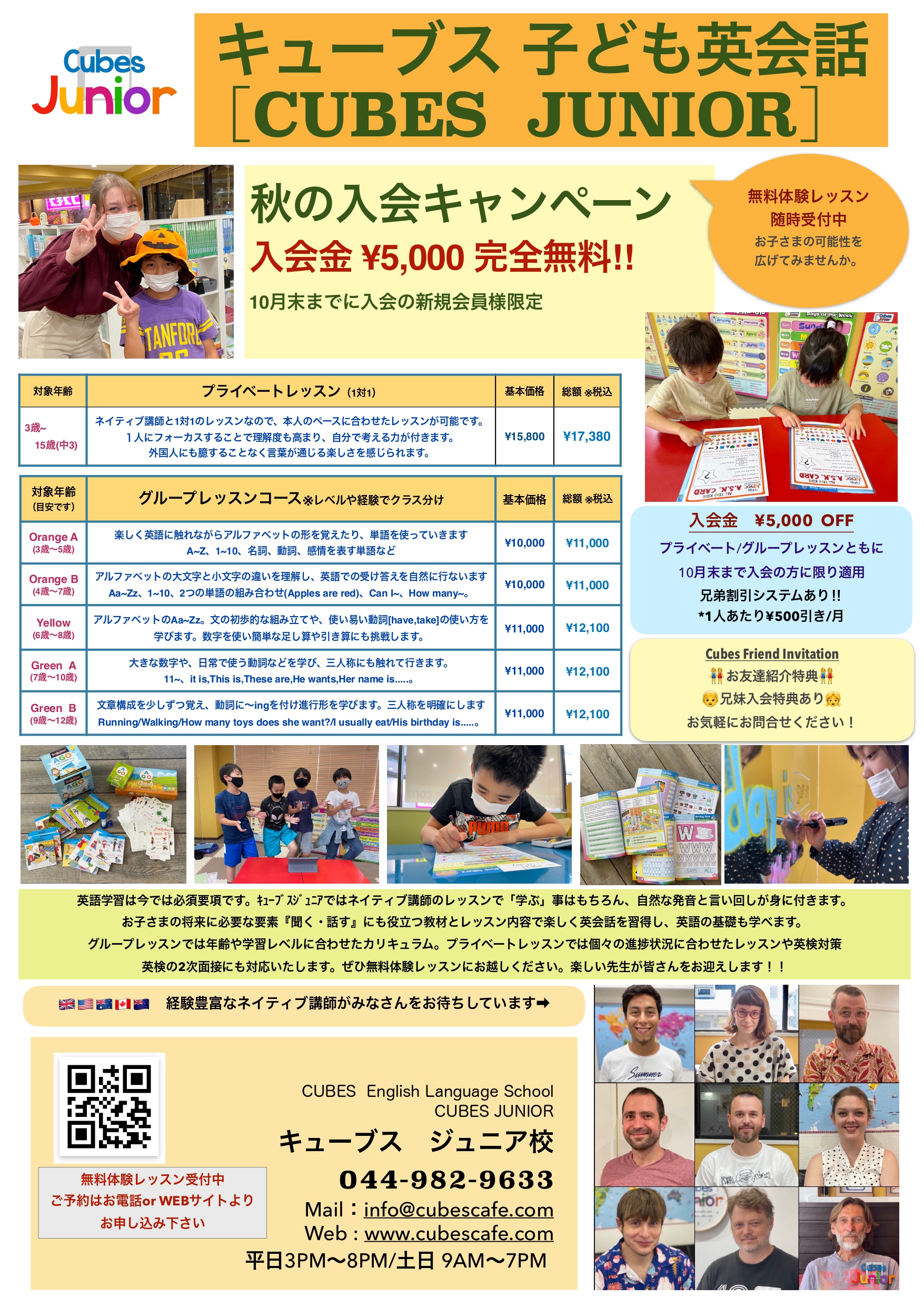 秋のキャンペーン/キッズ英会話 Cubes Junior