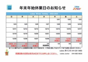 年末年始お休みのお知らせ【英会話スクールCubes溝の口校・こども英会話Cubes Junior】