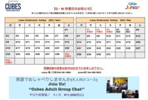 ゴールデンウィーク中のお休みのお知らせです。